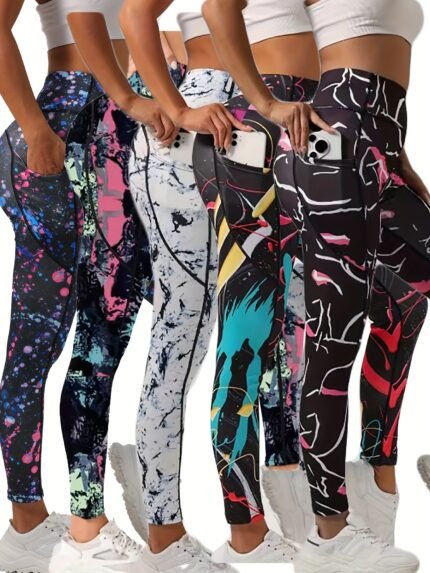 5pcs Women’s High Waist Butt Lifting Quick-Dry Breathable Non-See-Through Fitness Yoga Pants, Sexy Cropped Leggings with Pockets, Polyester 90% Elastane 10%, Knit Fabric, Fall/Winter Collection