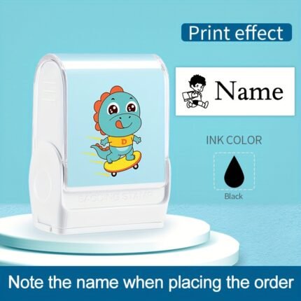 Custom Name Stamp with Dinosaur Design, Resin Material, Plain Ruling, Blue, with Personalized Gift Packaging for Clothing and Fabrics